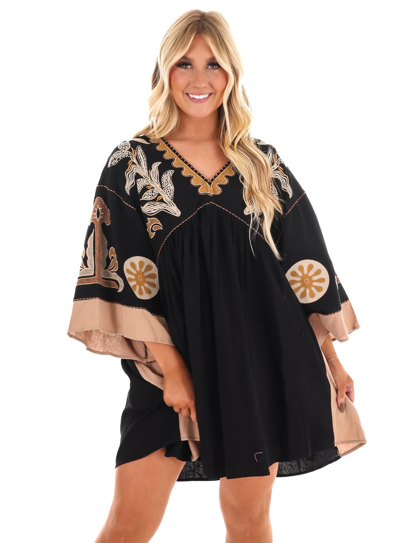 Embroidered Essence V-Neck Dress - Teal Rose / S