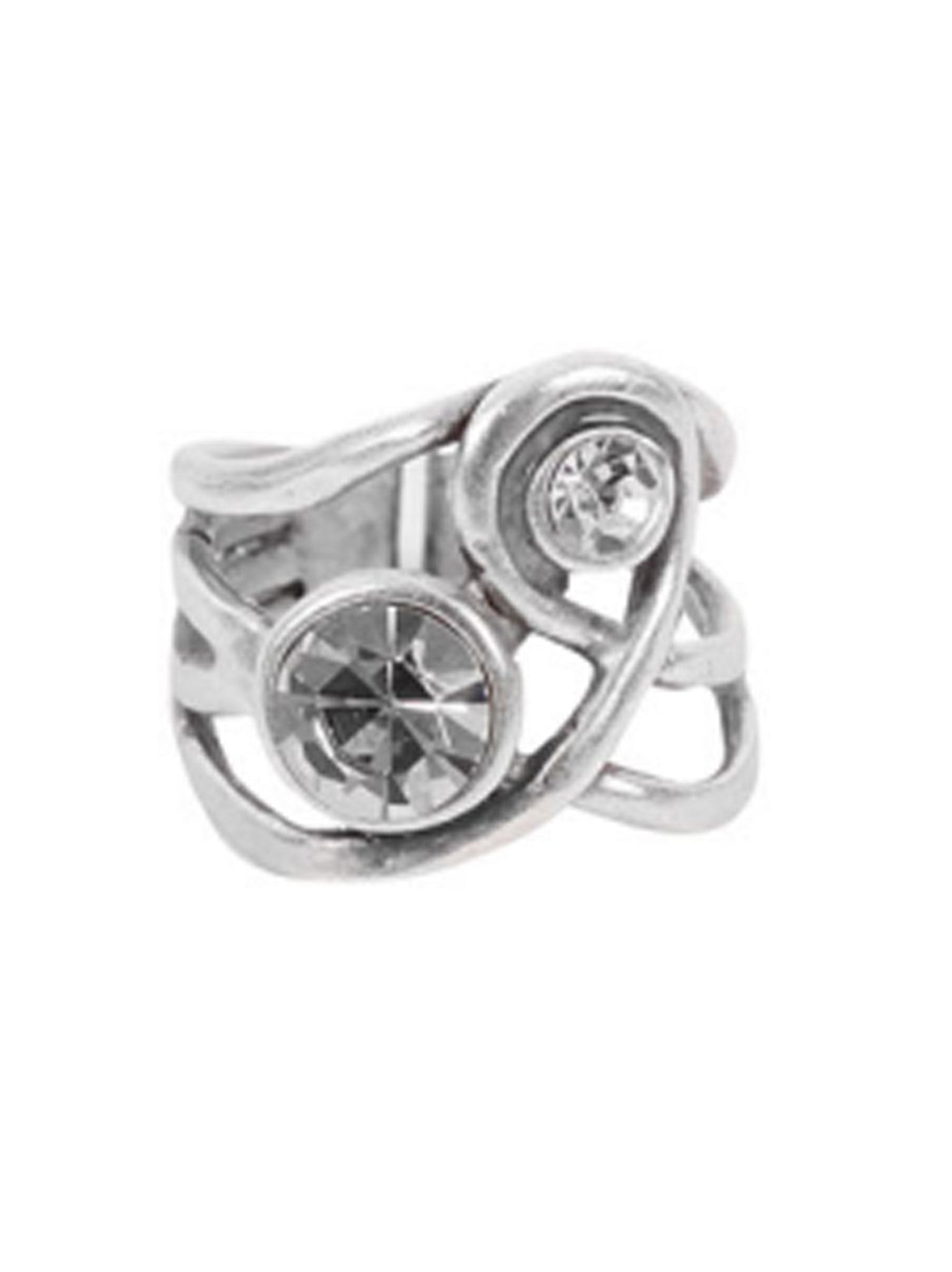Let sparkle grace your finger with this beautiful Alexis Silver Ring, featuring a swirly silver design adorned with rhinestones. Unique and eye-catching, this ring is sure to be a perfect addition to any outfit.