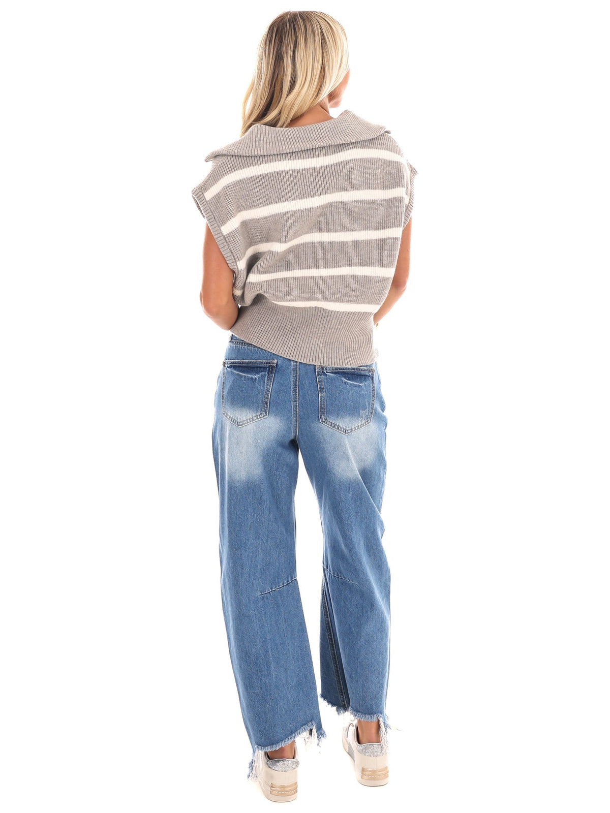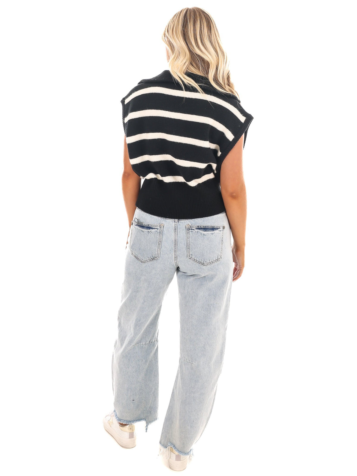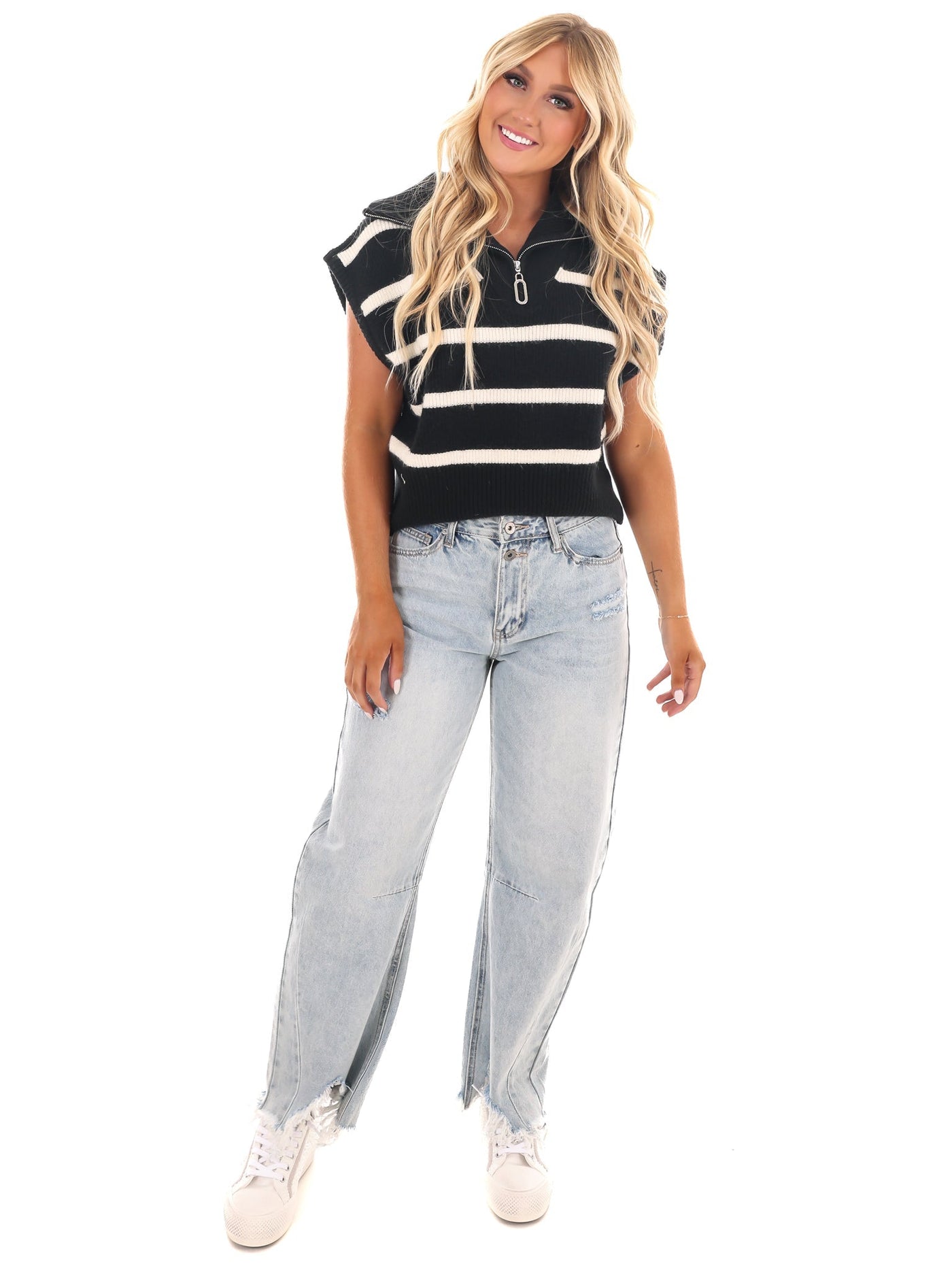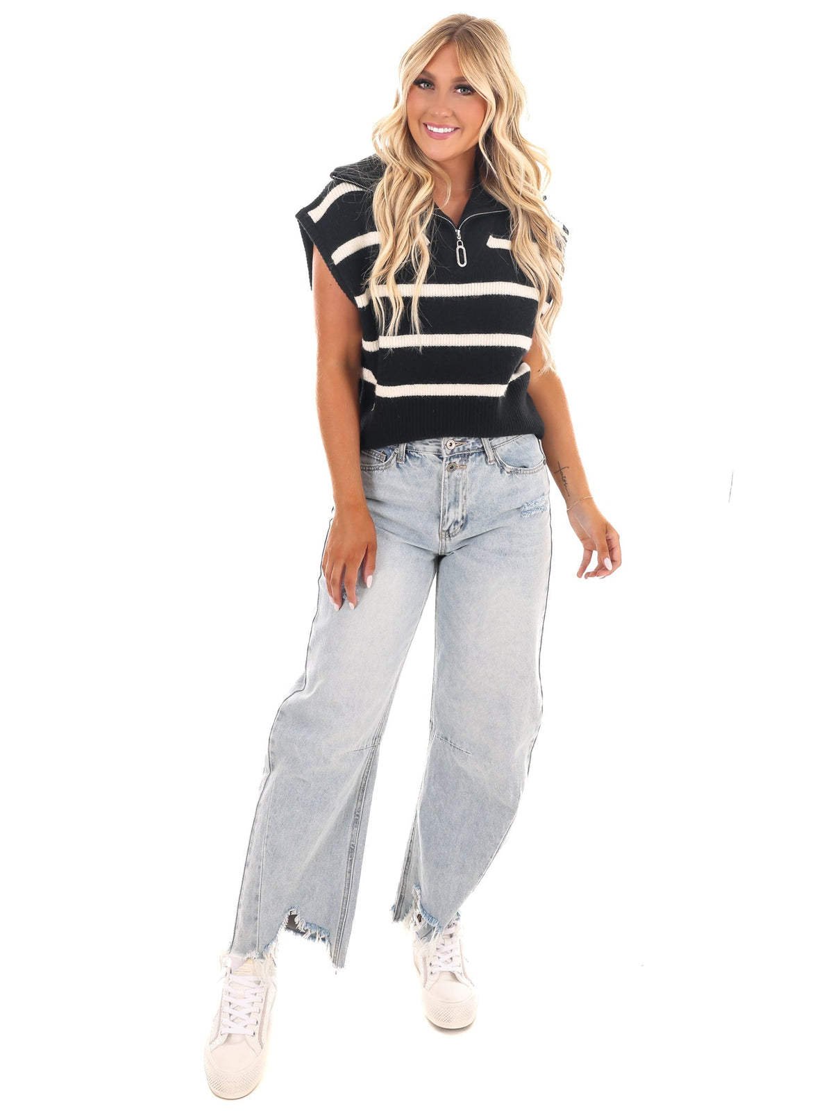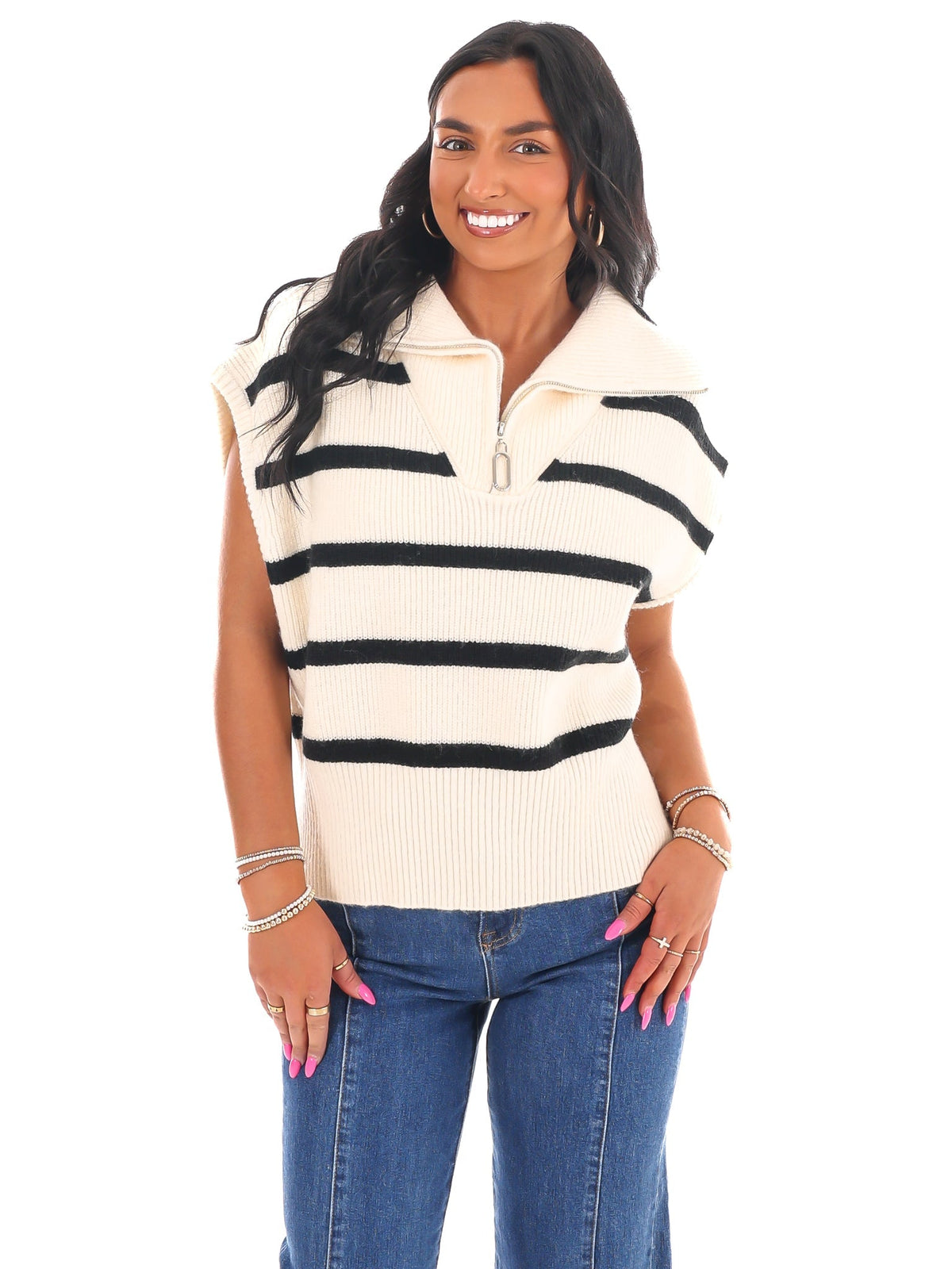 Put your area code on the map with this stylish sweater vest! Adorned with stripes and a zippered neckline, it's the perfect way to show off your unique style and hometown pride. Ribbed banded hemline means you'll stay warm and comfy all day long!