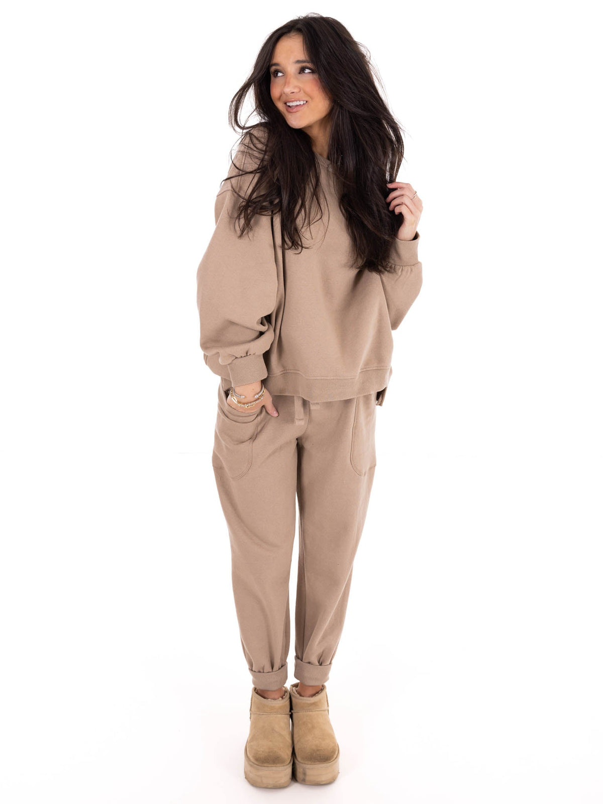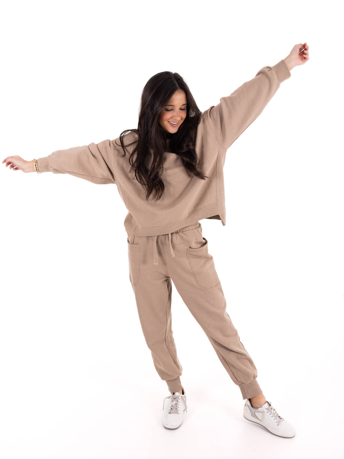 Complete your cozy look with our Back for You Jogger Pants. Designed with an elastic waistband and drawstrings, these joggers provide both comfort and style. Plus, the side pockets make them functional for everyday wear. Pair them with our Back for You Pullover for the ultimate lounge set!