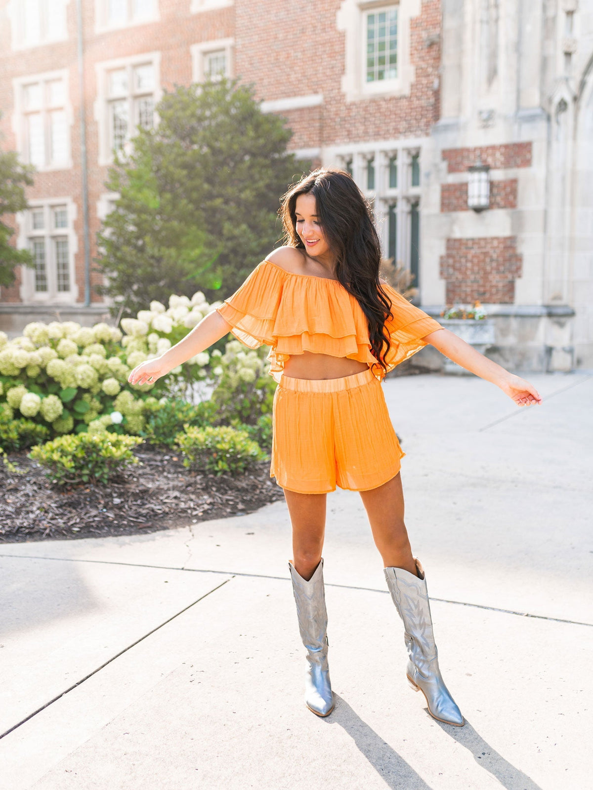 Look fierce with this Beast Mode Two Piece Set - the perfect combo for your Tennessee Football Collection! Ready to roar, this set features a tiered ruffle hemline strapless crop top and pleated elastic waistband shorts. Put your own spin on it and take your look to the next level!