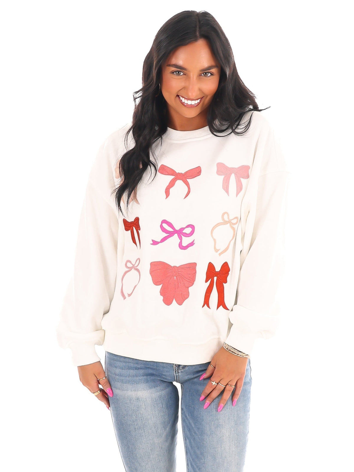 Bow-tiful Embroidered Oversized Sweatshirt - White / XS