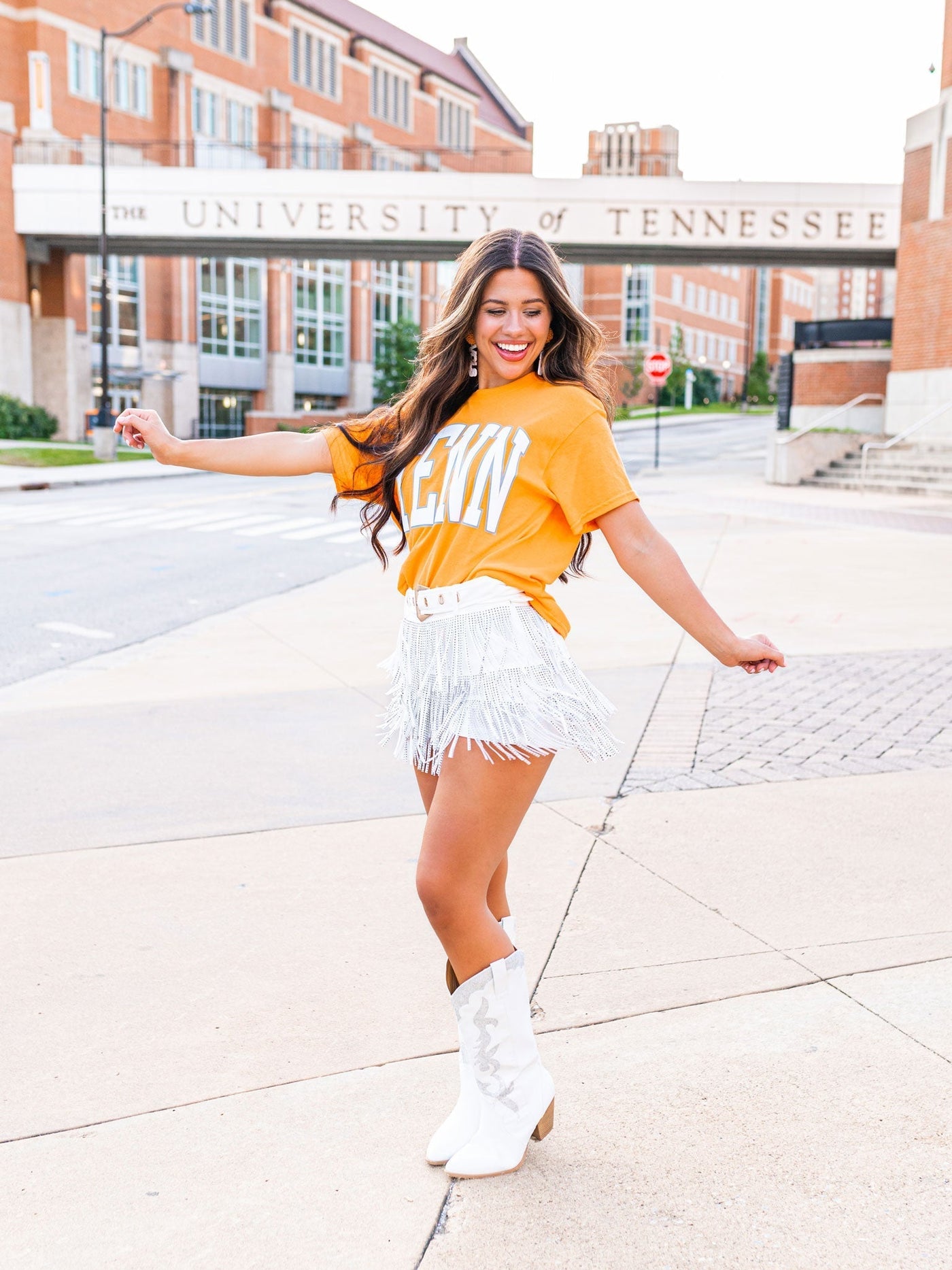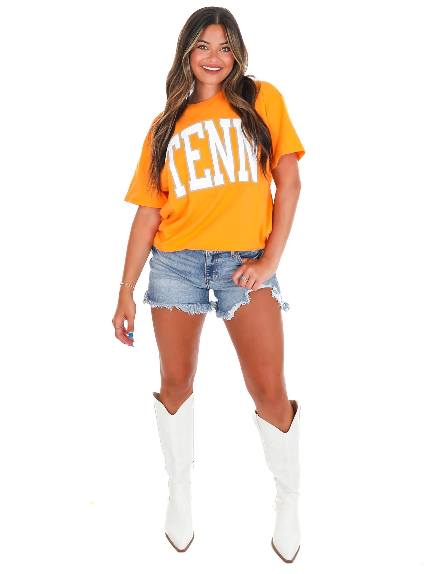 Score a touchdown with this Tenn Puff Tee! This game-winning gray and white puff TENN graphic will be sure to make you stand out on the field and off. Represent your Tennessee pride in style! Go Vols!