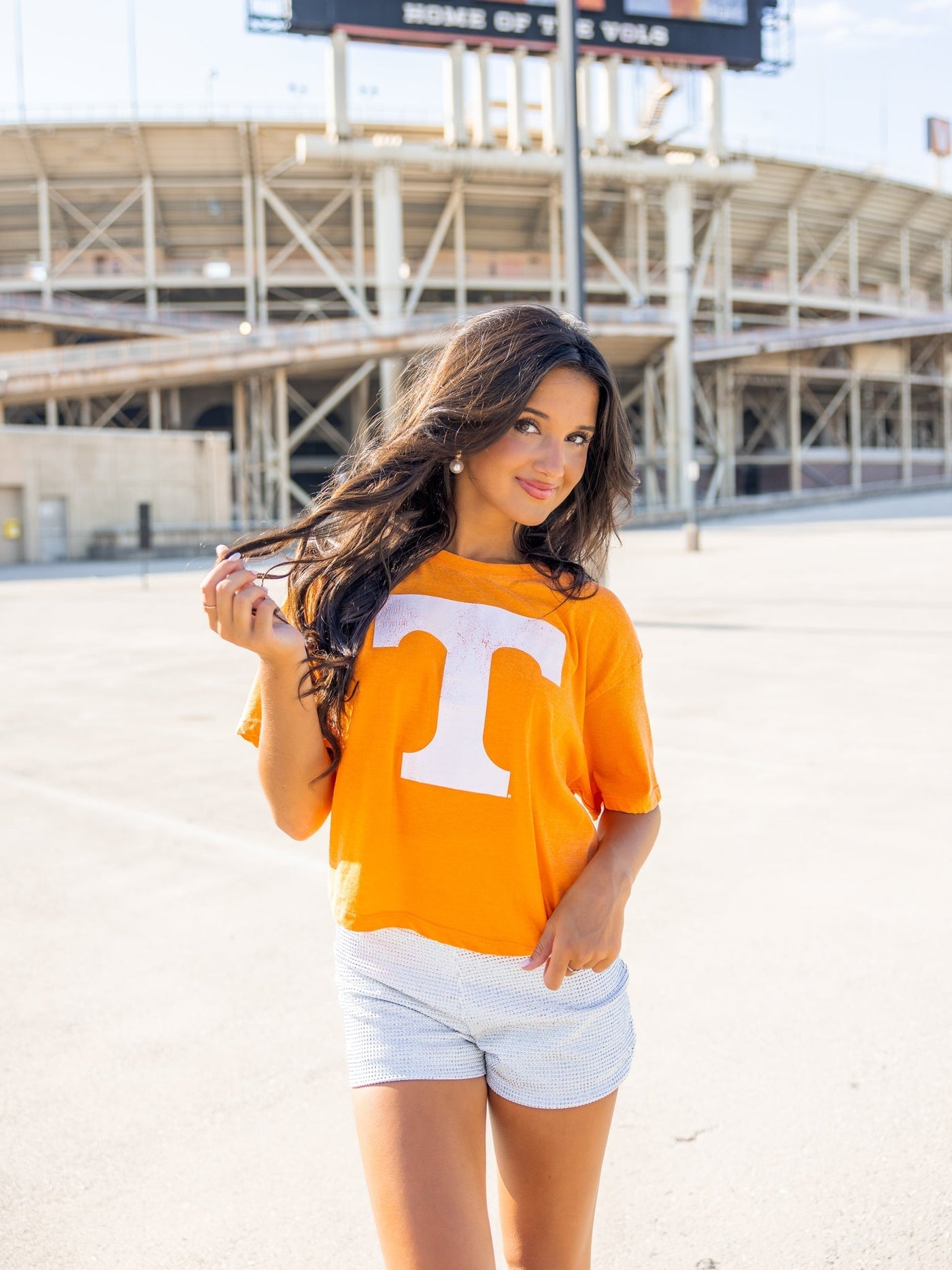 Tennessee Distressed Logo Crop Top - Light Orange / S