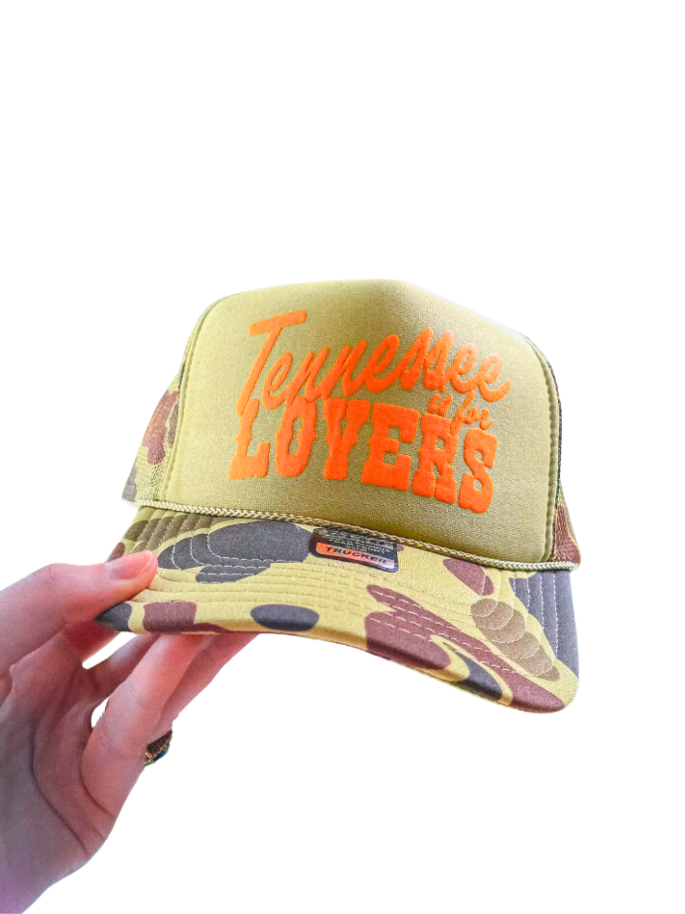 For the lovebirds from the Volunteer State, our Tennessee is for Lovers Trucker Hat features a playful camo design with a breathable mesh backing. Show your love and stay cool at the same time!