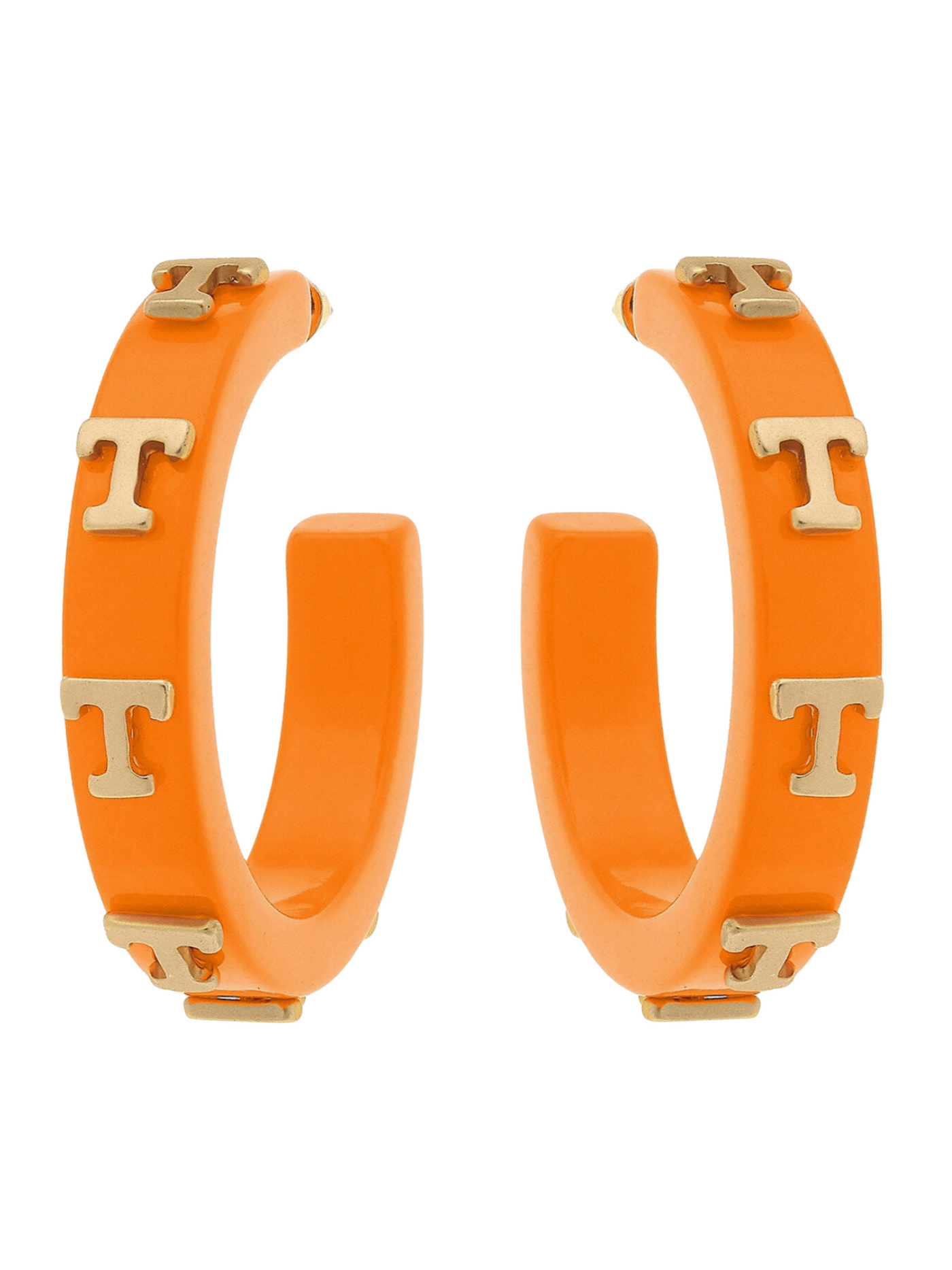 These hoop earrings are the perfect accessory for any Tennessee Volunteers fan! Made with a base metal and worn gold plating for a rustic look, their 2" diameter showcases the resin logo beautifully. With a post-back closure, they are easy to wear and show off your team spirit. Officially licensed by the NCAA.