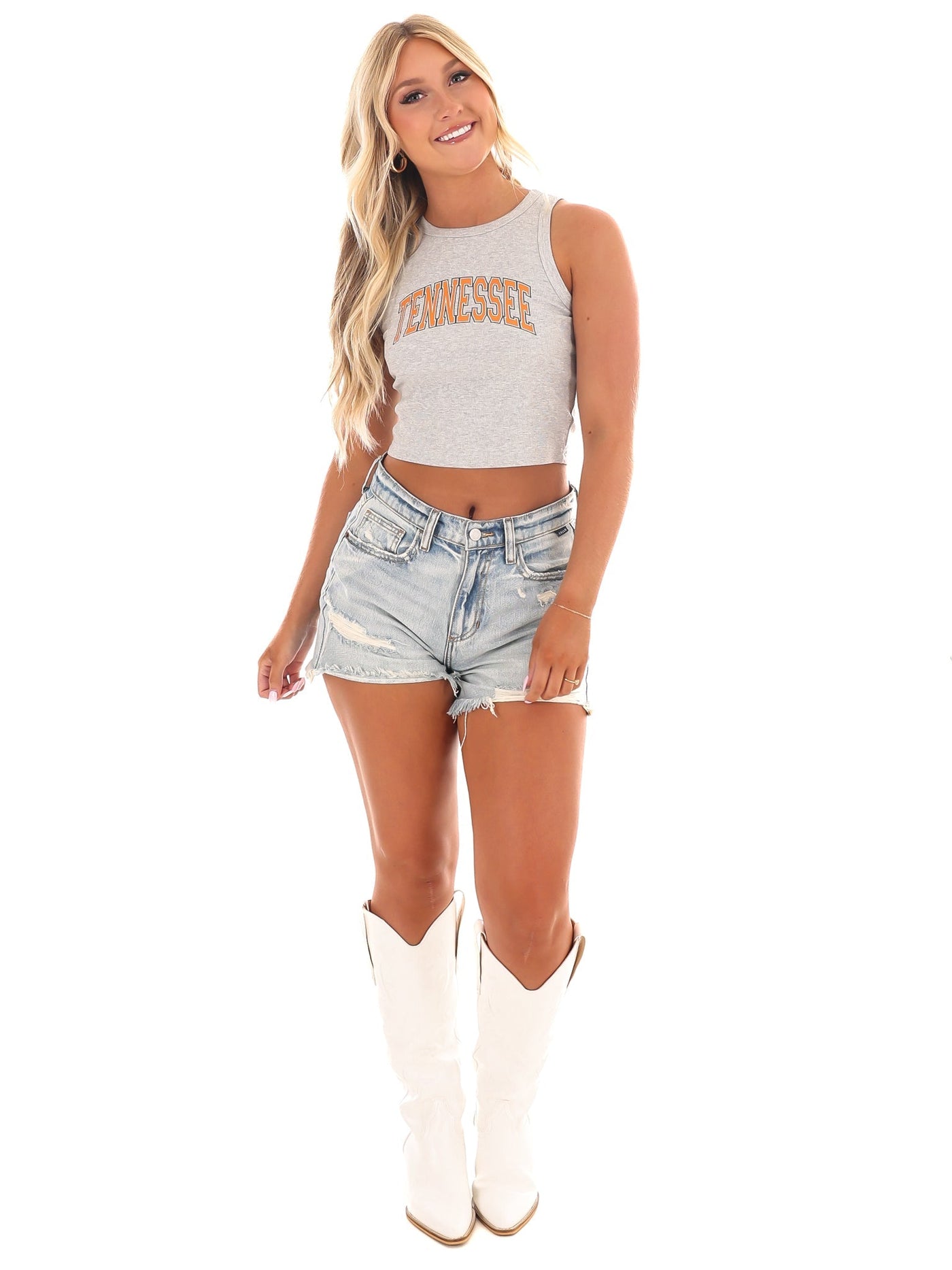 Tennessee Volunteers Well Played Essential Ribbed Crop Tank - Grey / S