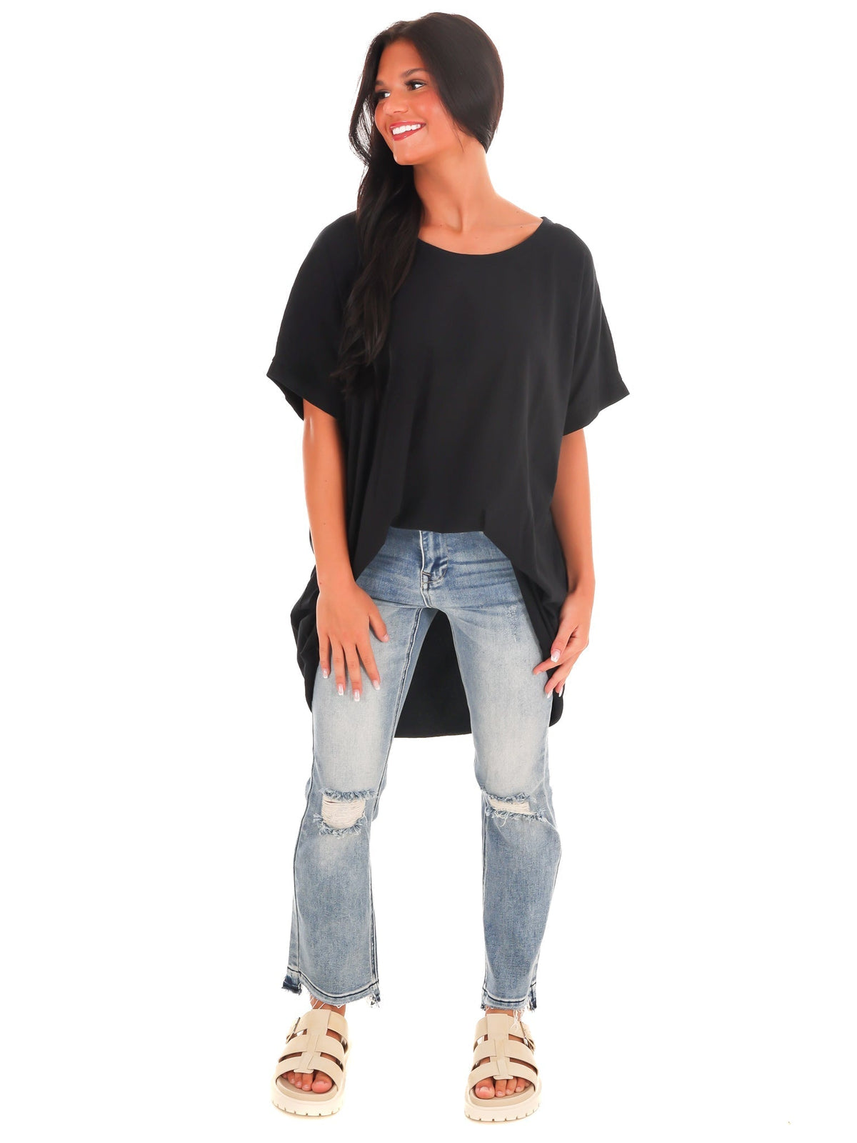 Looking for a fun twist on a classic top? You'll love our Timeless Trend High Low Top! The oversized fit and crew neckline offer comfort and style, while the high low design adds a unique touch. Stay on trend with this playful piece.