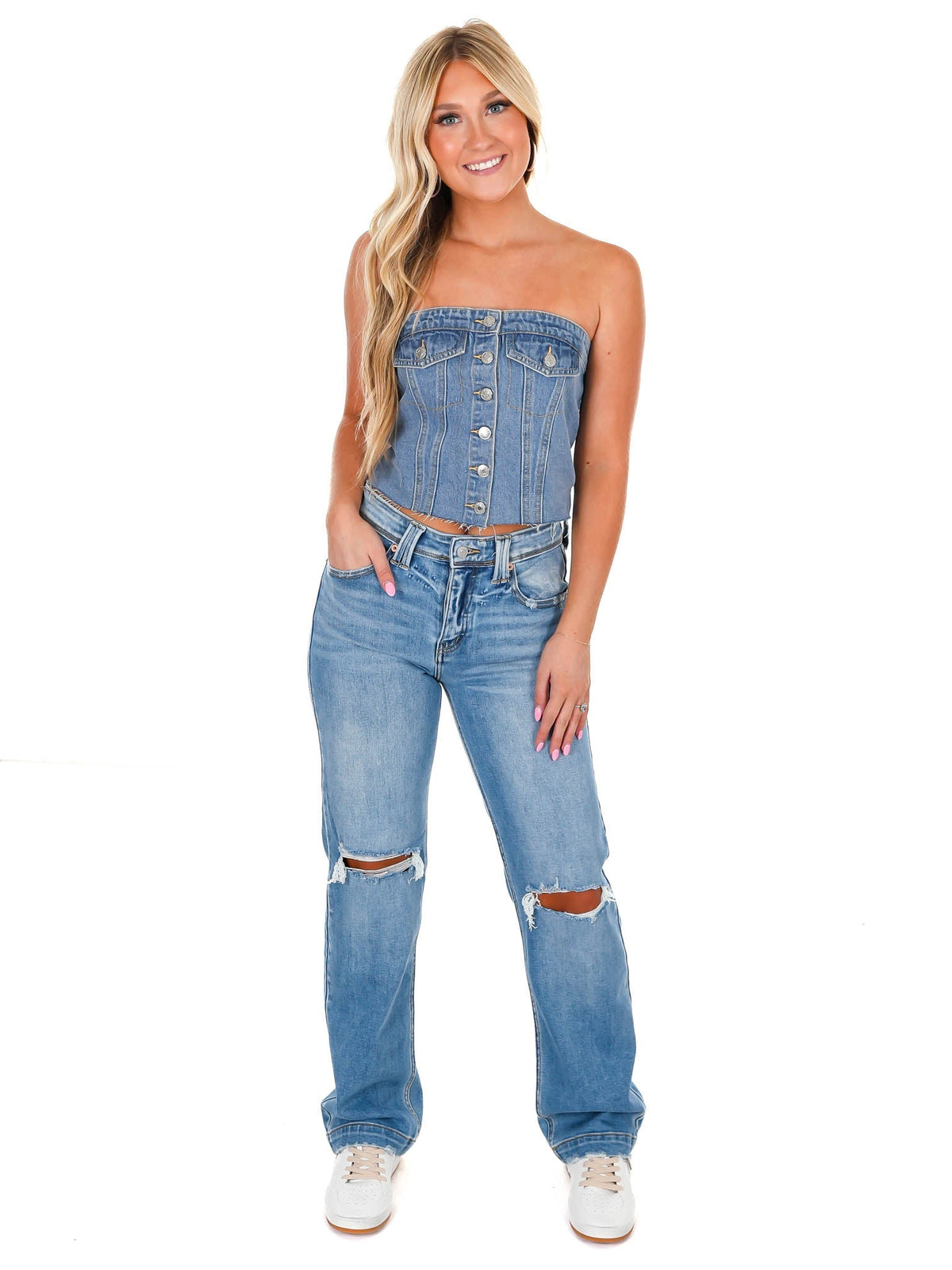 Treat Yourself Denim Top - Light Denim / S