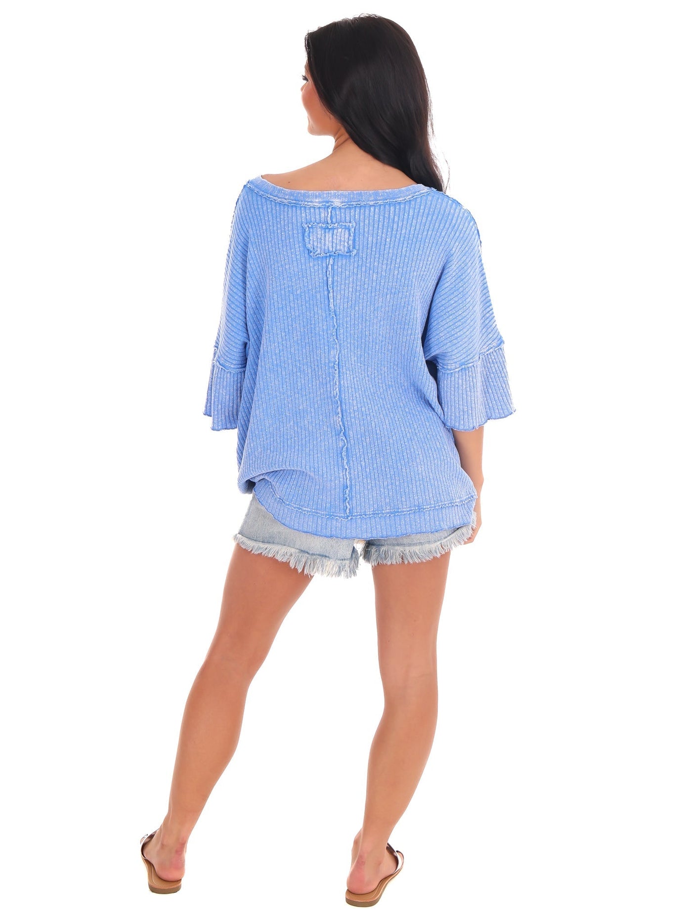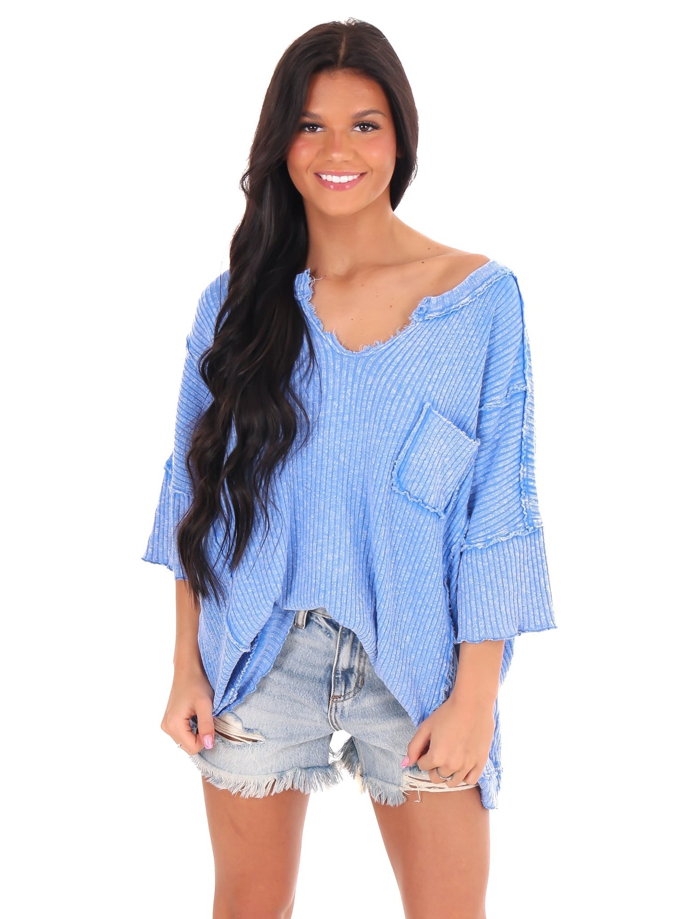 Indulge in comfort and style with our Treat Yourself Top. Crafted from mineral washed thermal knit for a cozy feel, it features a notched neckline, emphasized seams, and a left chest pocket. With dropped shoulders and a loose, relaxed fit, this top is perfect for lounging or a casual day out.