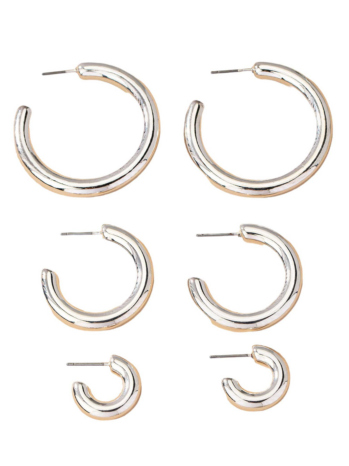 Shine with these 3 unique hollow tube hoop earrings! Each set comes with 3 sizes for versatility -- small, medium, and large. Stand out from the crowd with this fun trio of a statement set!