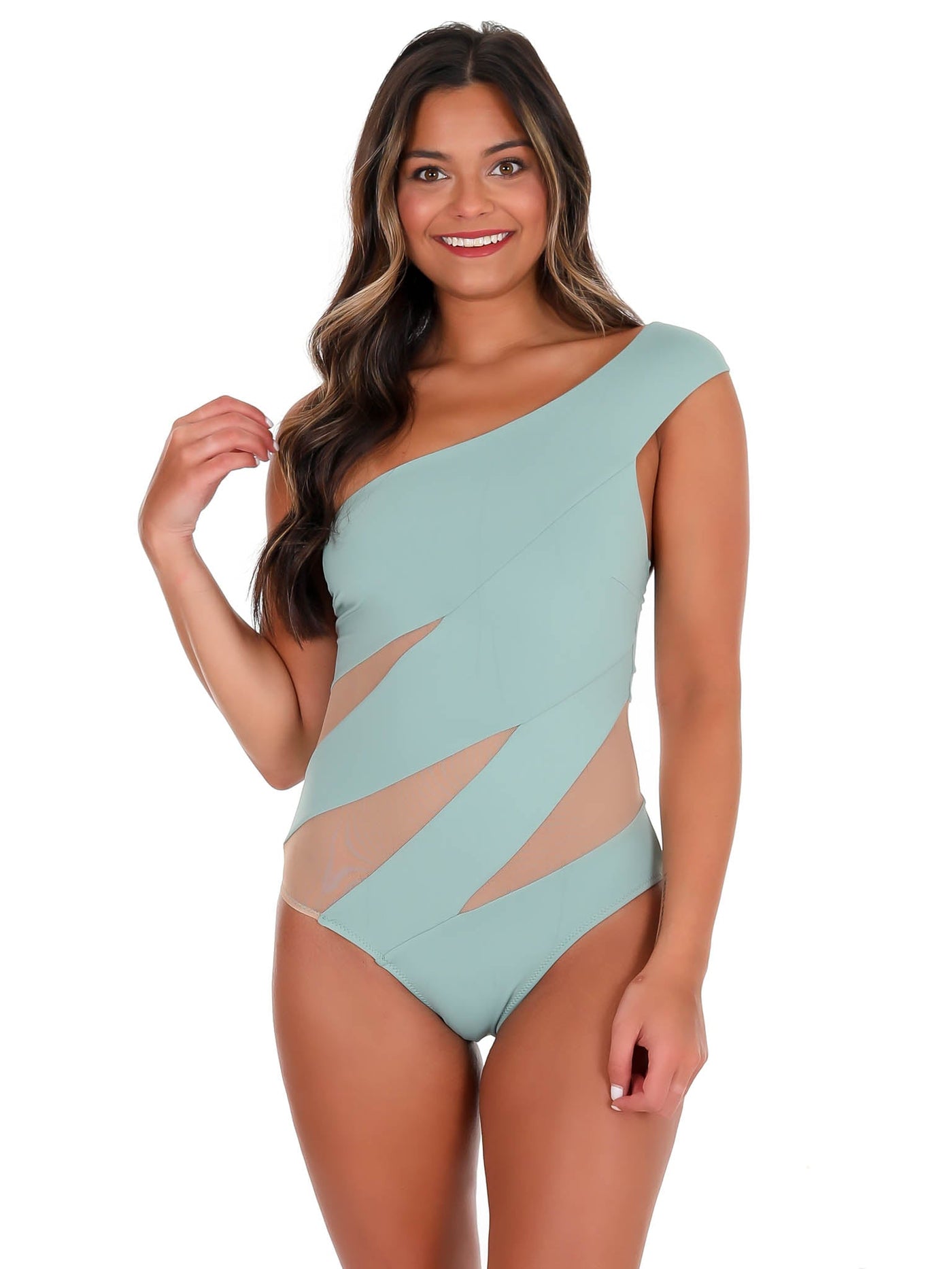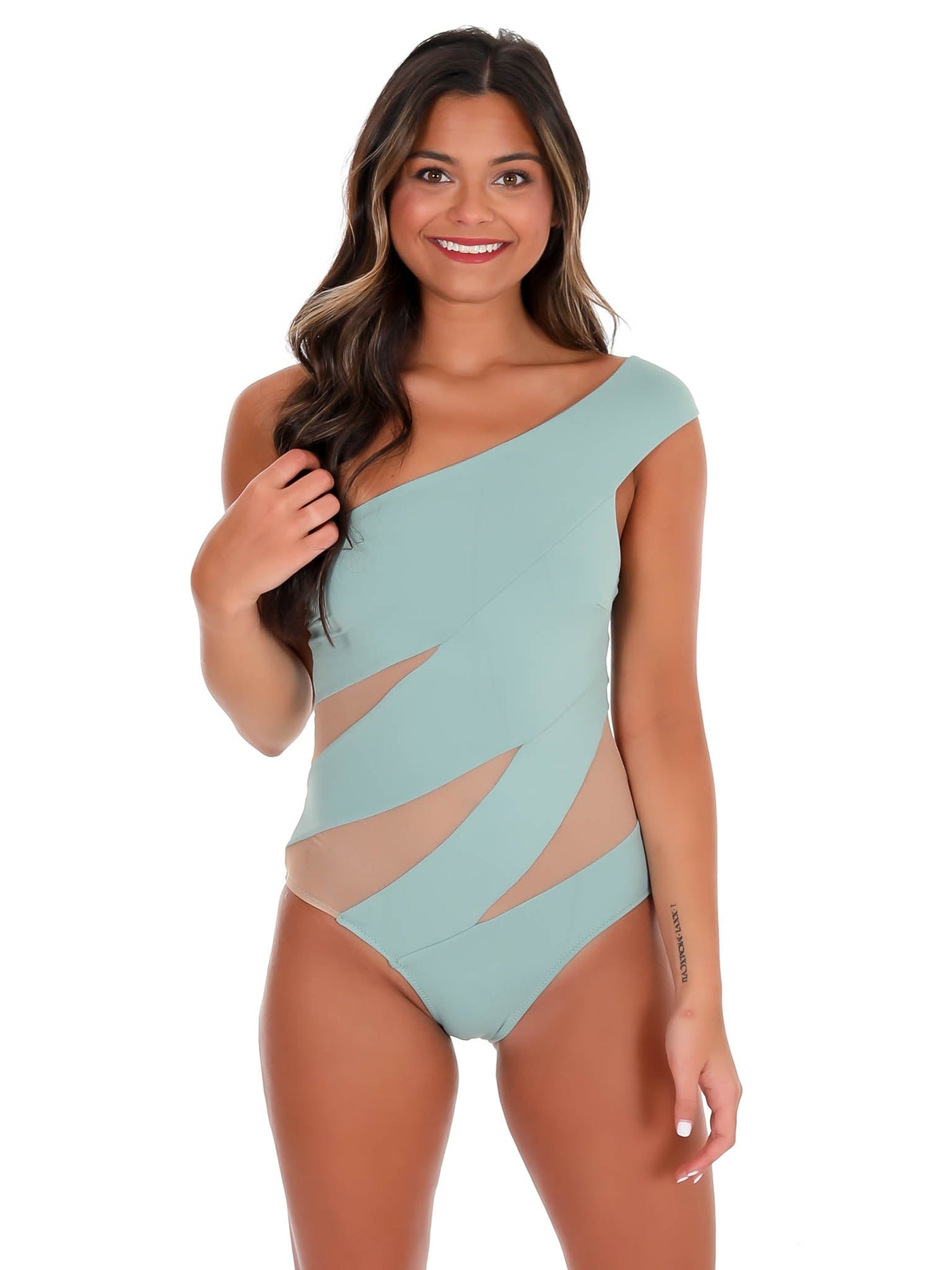 Inform when this item available Tropical Tides Sage Mesh One Piece Swimsuit