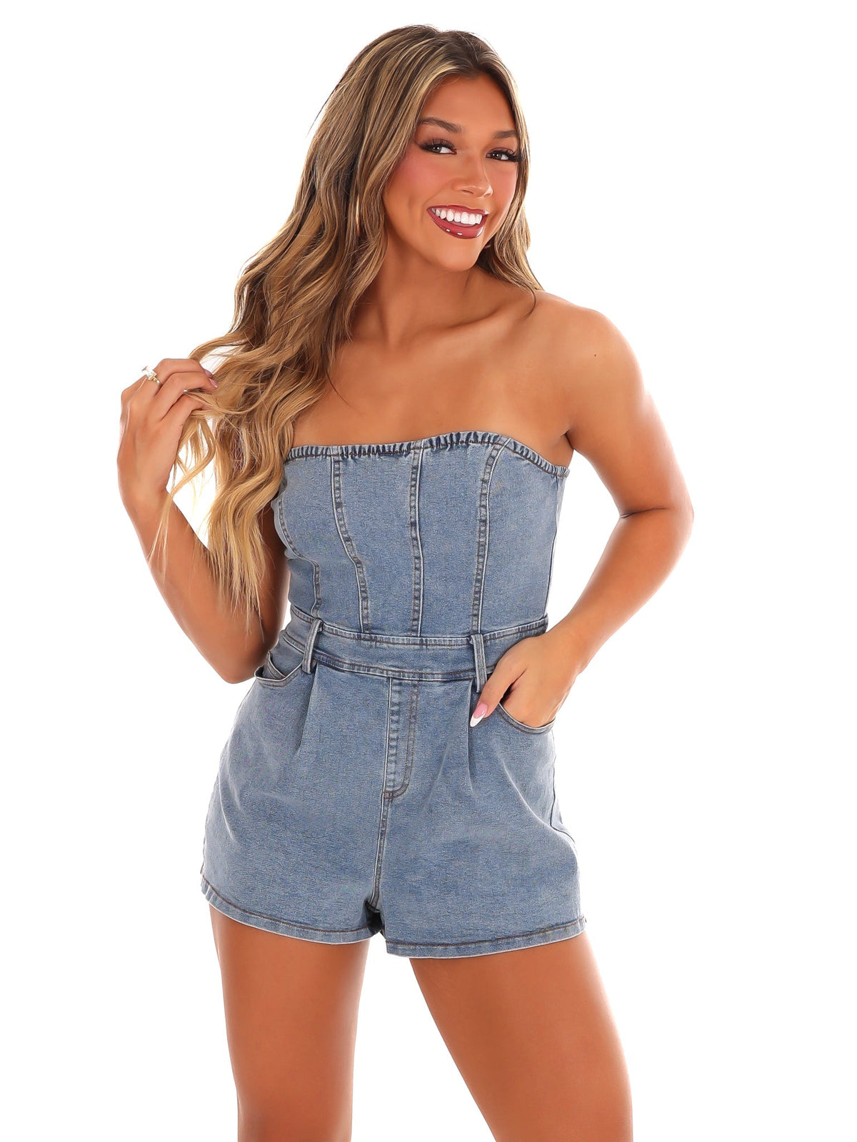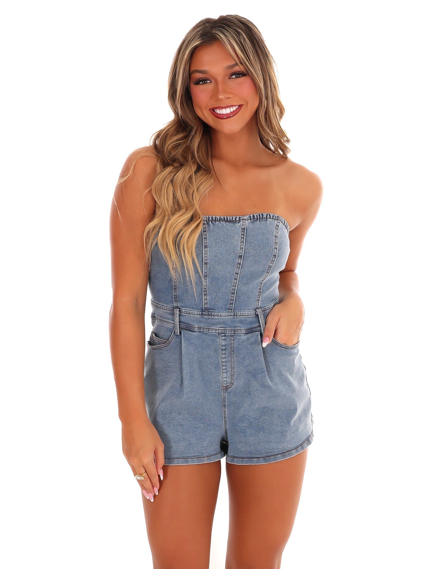 Turn the Page Denim Romper - Denim / XS