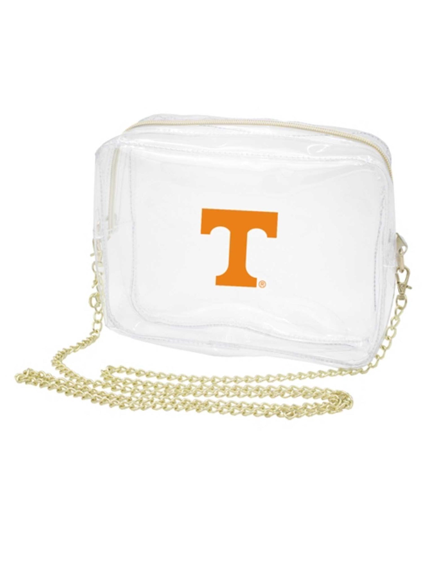 Create a look of iconic style with our all clear Camera Crossbody. Our stadium compliant crossbody features a clear PVC body with gold hardware accents and a beautifully timeless accent chain. The main zippered compartment offers secure storage for your personal items. Pairs perfectly with our interchanagable straps for added style.
