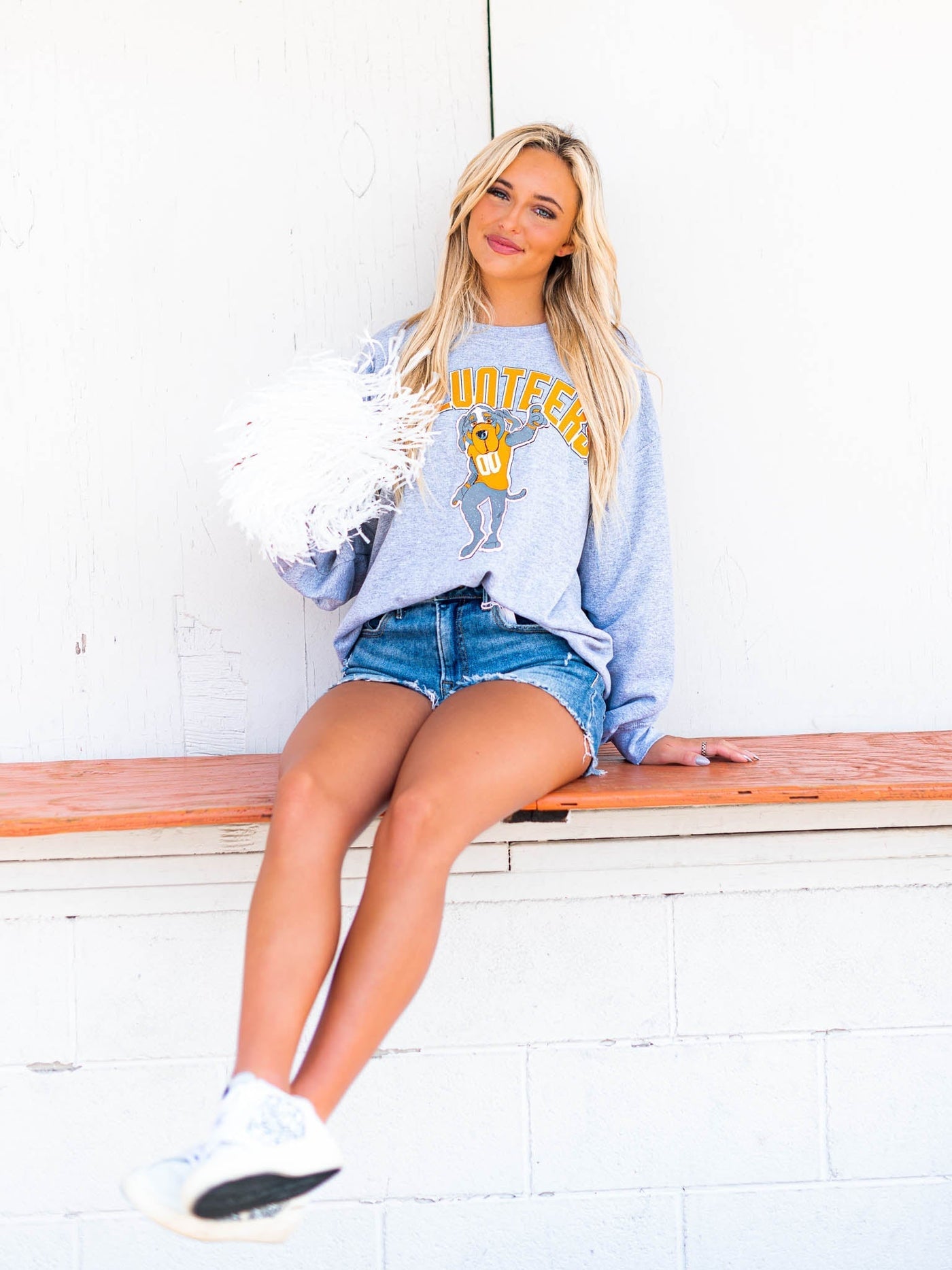 Volunteers Cartoon Mascot Puff Ink Thrifted Sweatshirt - Gray / S