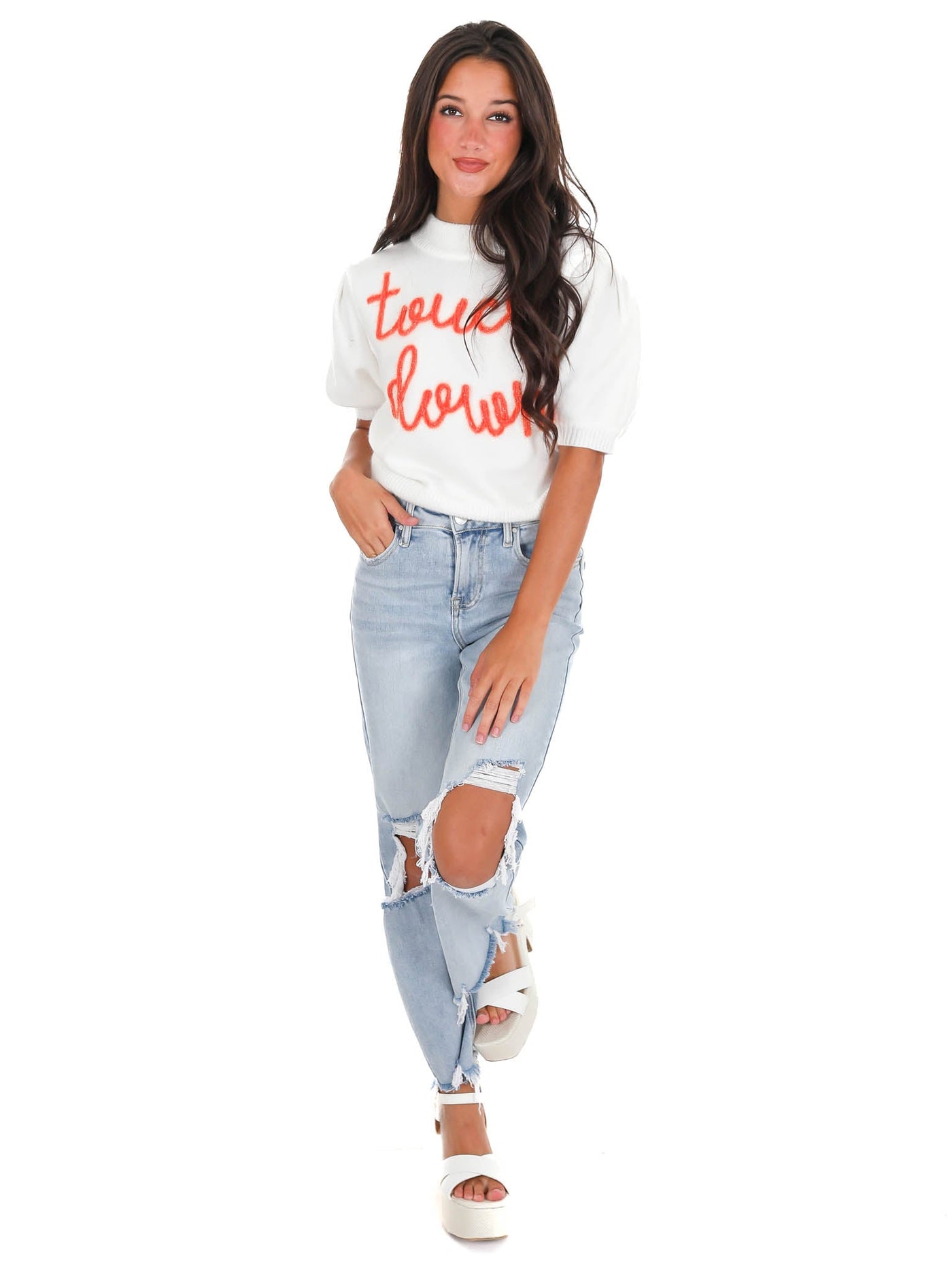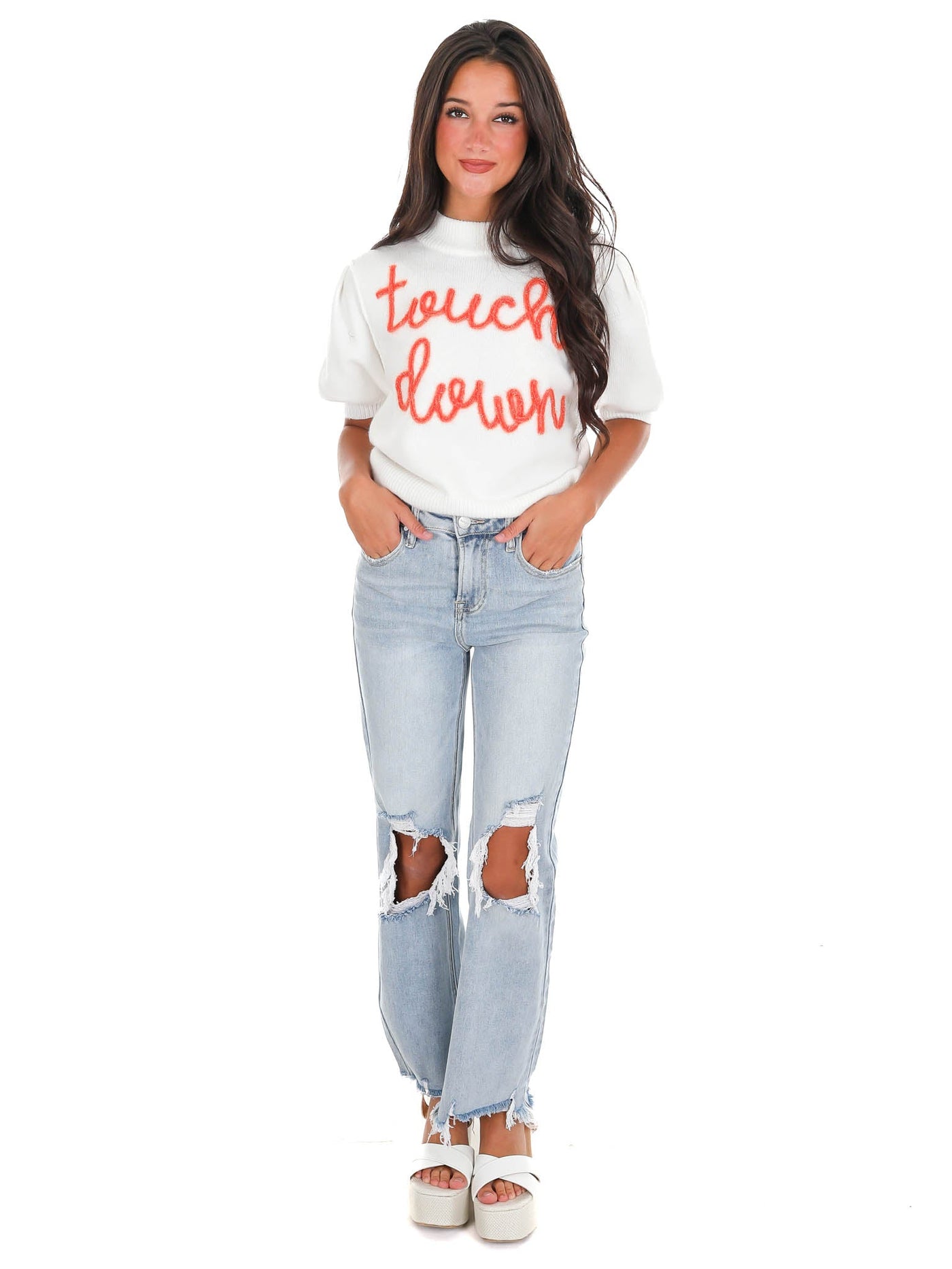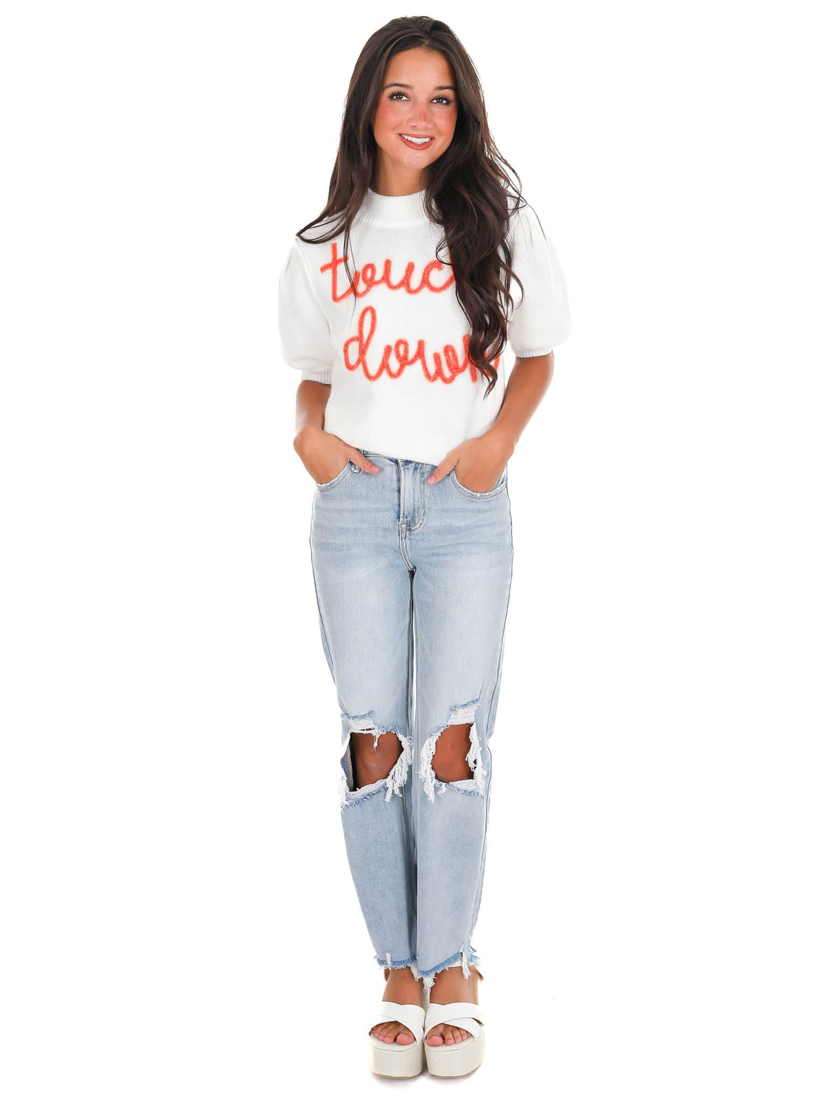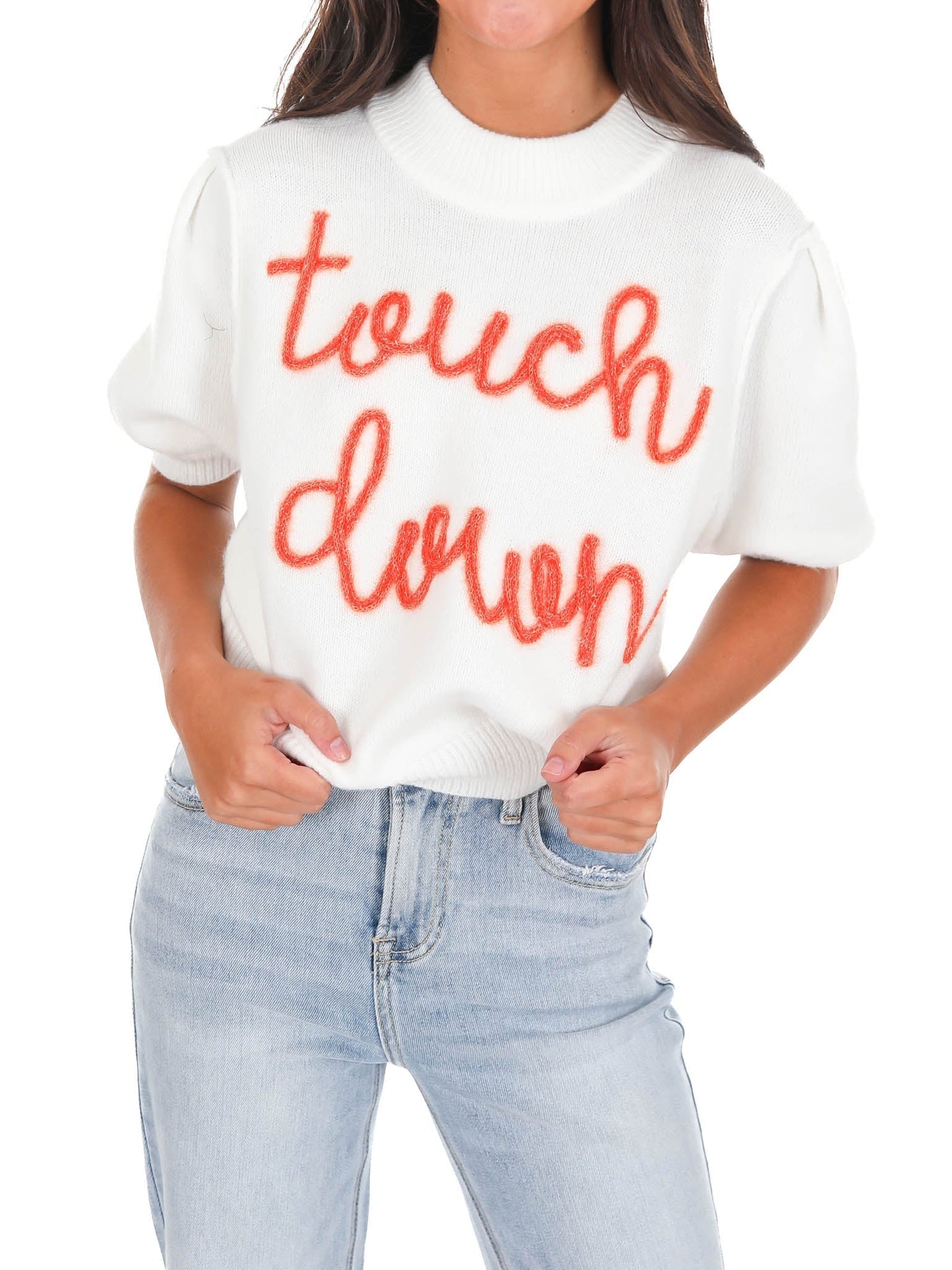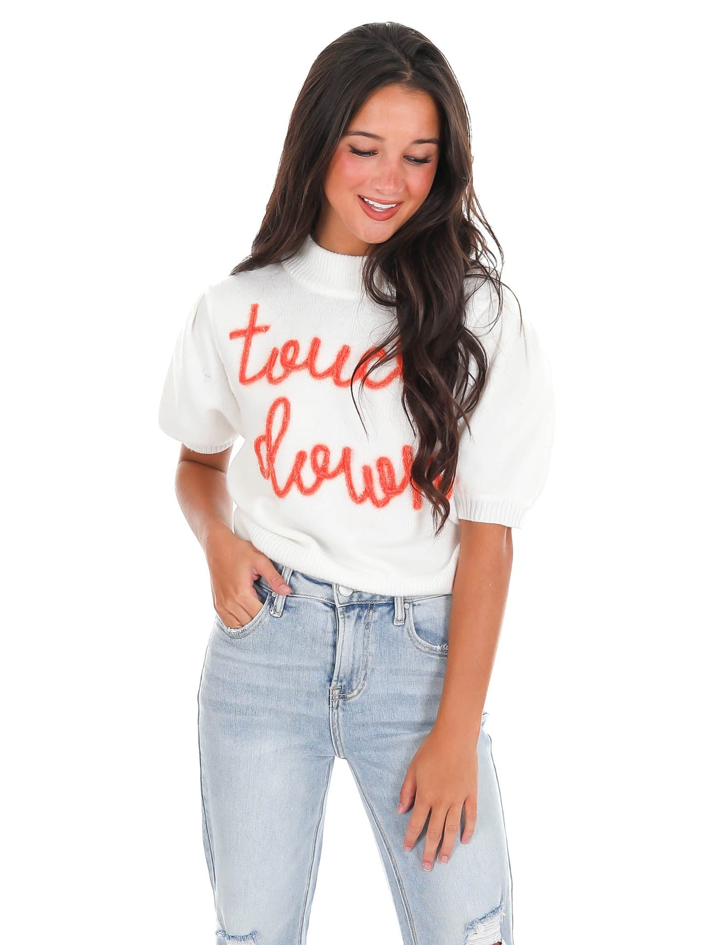 Score a touchdown in style with this We Want A Touchdown Sweater! Featuring a round high neckline, puff sleeves, ribbed hem, and a super cute touchdown patch, you'll be sure to score big style points with this look! Go, team--we want a touchdown! 🙌