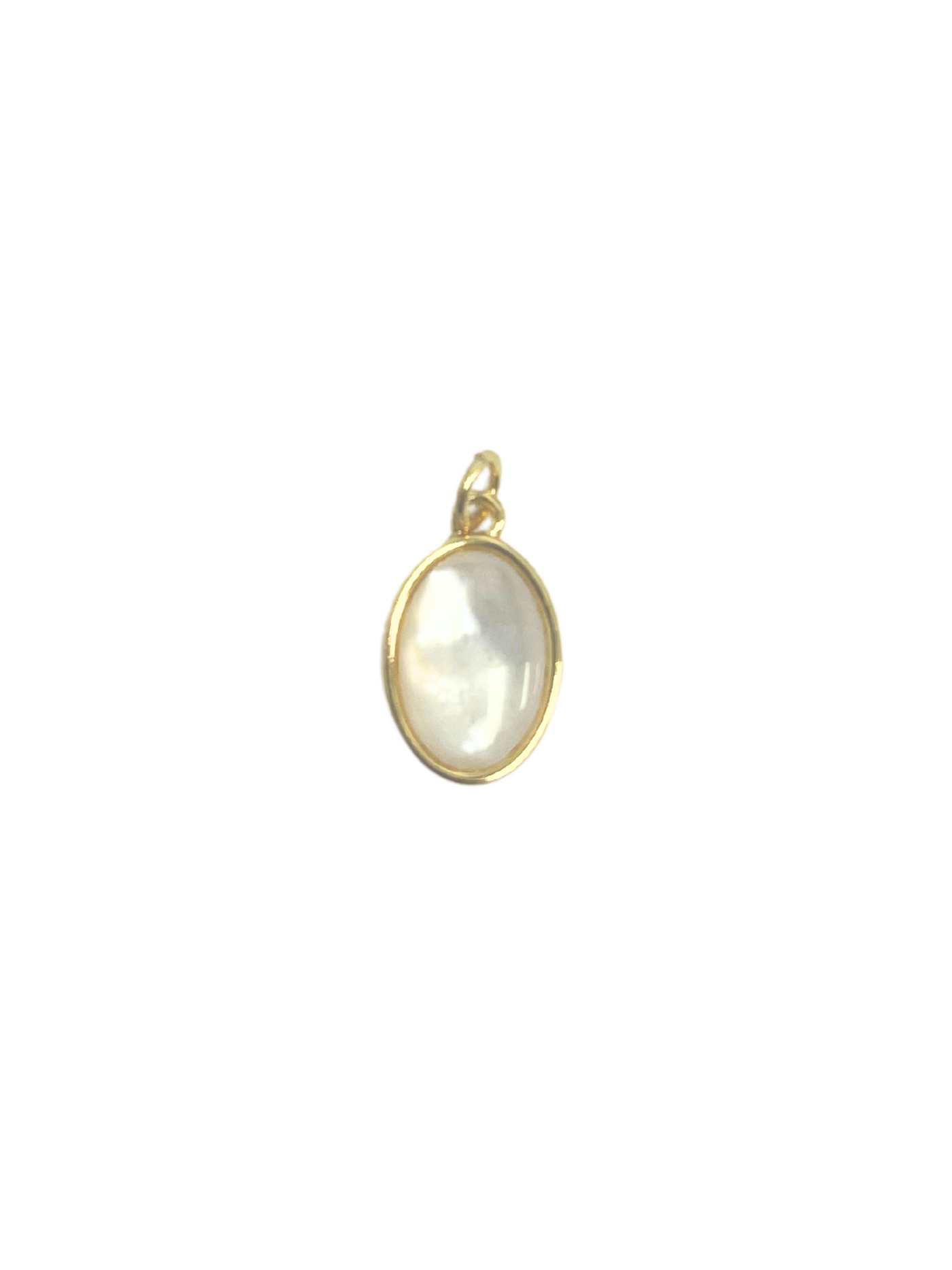 Add a touch of whimsy to your jewelry collection with our White Oval Stone Charm. Featuring a unique oval stone in a bright white hue, this charm will add an air of playfulness to any accessory. Perfect for the lighthearted fashionista in your life!