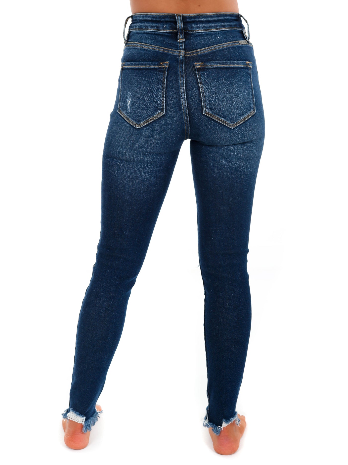 All the heart eyes for these new jeans! Featuring a high rise fit, distressed details and raw edge hemline, these jeans are a must have! Don't wait to grab yours!