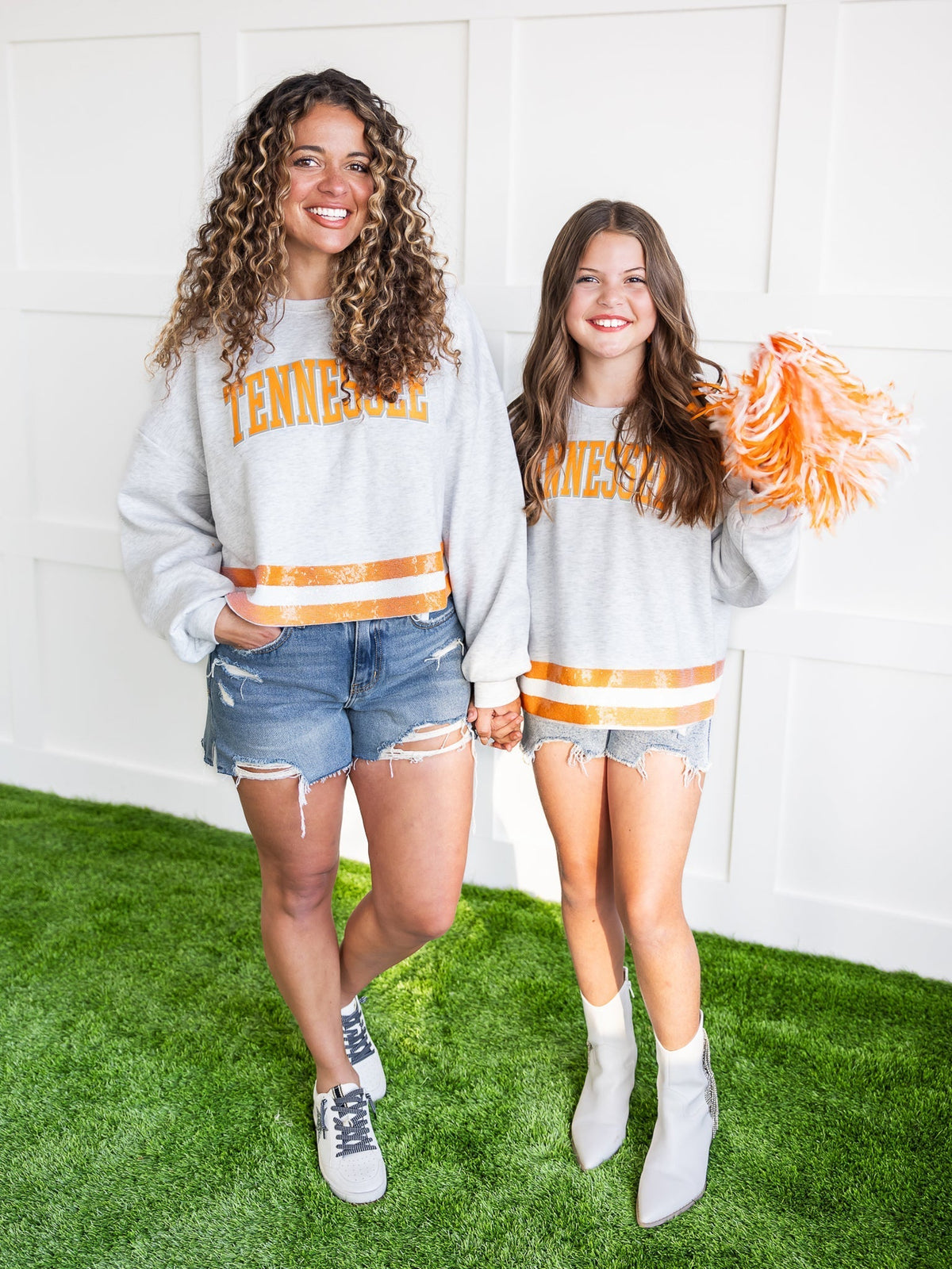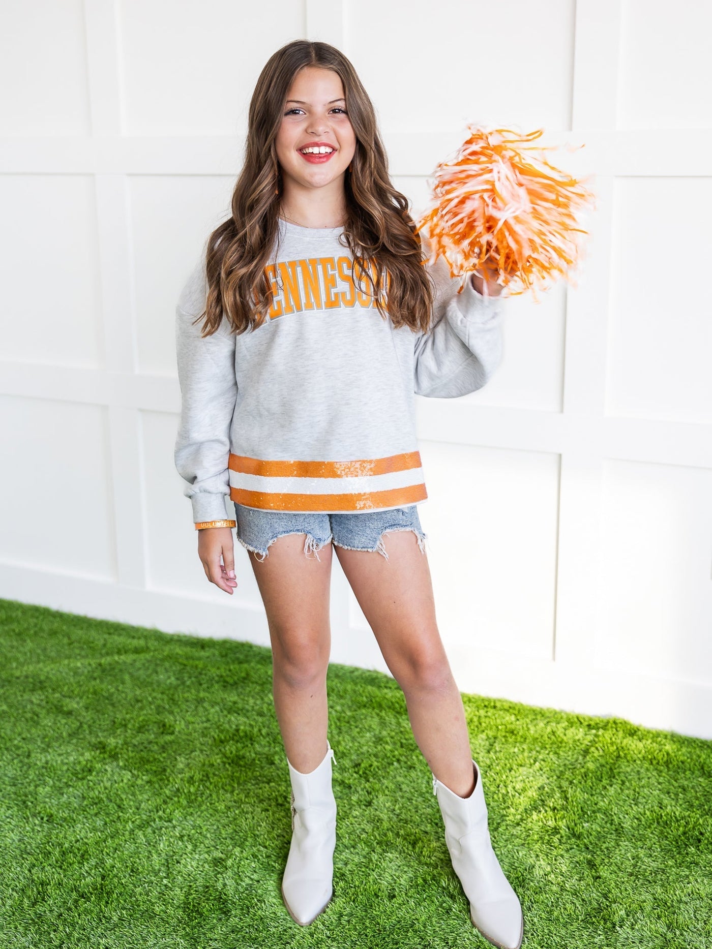 Add some sparkle to your child's wardrobe with our Youth Tennessee Volunteers Pass the Shine Sequin Crop Sweatshirt. This cozy crop sweatshirt features a sequin strip hemline for a touch of shine. Perfect for showing off their team spirit!