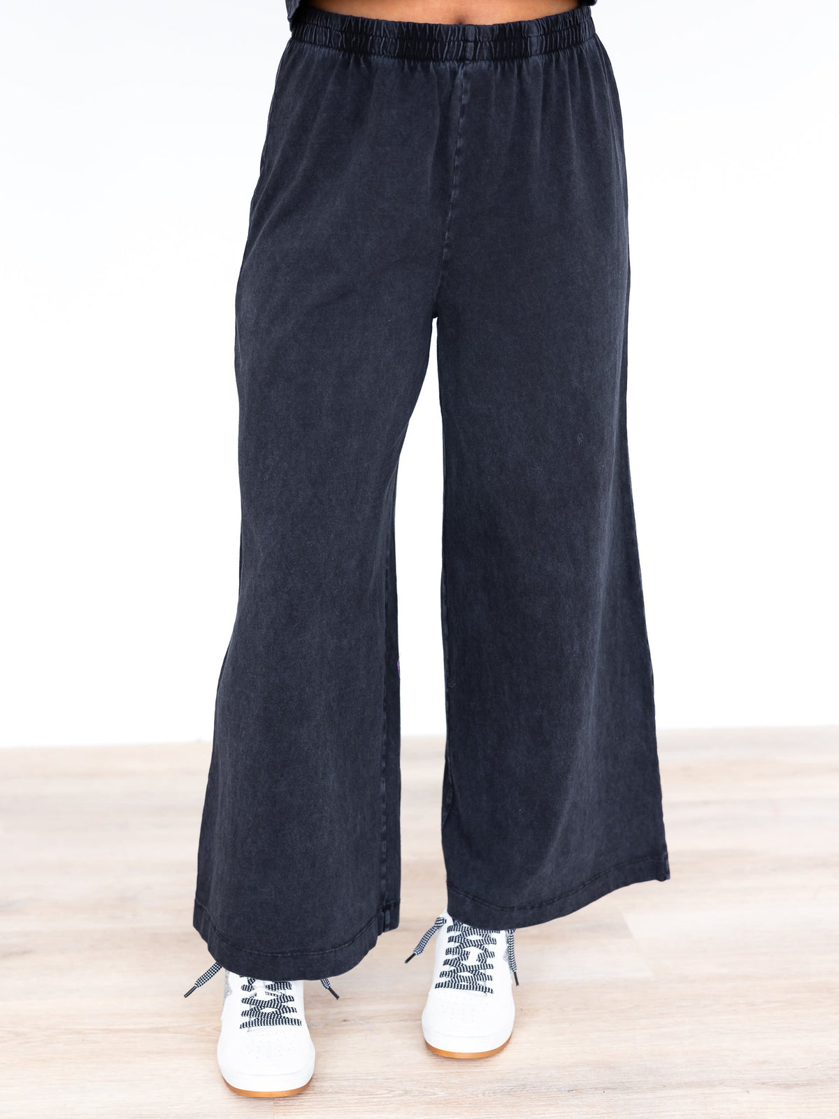 Pull on elastic wide leg pant